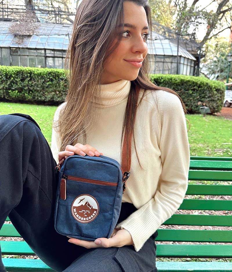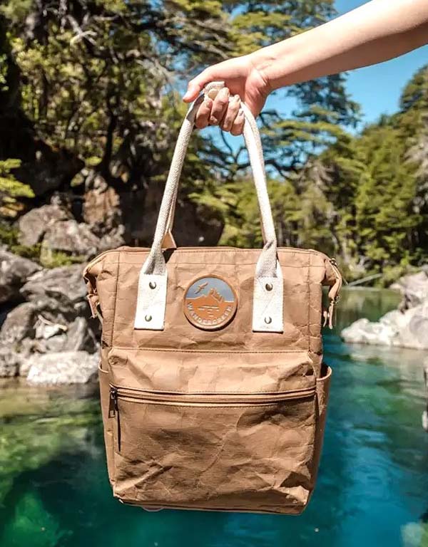 La línea de mochilas y accesorios sustentables de Wandergreen estan fabricados con papel kraft ‘tratado’, un material que se transforma en una tela resistente, lavable y reciclable. Los productos que ofrece la marca, además de ser estéticamente atractivos y funcionales, encarnan un compromiso con el triple impacto: ambiental, social y económico.